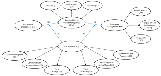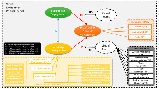 No major studies have been undertaken to date to precisely examine how more effectively SE and an appropriate KM can contribute to better implementation of sustainable practices in project management, particularly considering a virtual environment of work. Indeed, the academic literature has not yet properly addressed either mutual correlation of SE and KM or their influence on SPM. Proposing a structured model to quantitatively assess the influence of these constructs to SPM in a virtual work environment was the goal of this research.