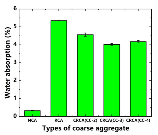 - The normalized water absorption of CRCA at arbitrary tn: wa(n)(tn) = wa(tn)/wa(RCA), where wa(tn) is the water absorption of CRCA at arbitrary tn, wa(RCA) is the water absorption of RCA, and wa(RCA) = 5.35%.
