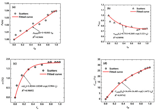 - Based on regression analysis using the least squares method, the time-varying models of the property indexes for CRCA are established in order to quantify the property parameters of CRCA at arbitrary carbonation times under the accelerated carbonation curing conditions of CC-3, which can be used to elaborate the time-varying law for the property indexes of RCA in this paper during accelerated carbonation under the best curing conditions of CC-3.