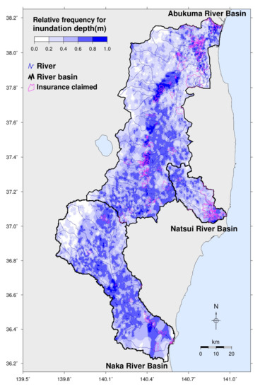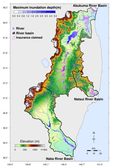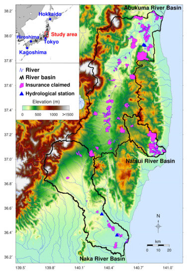 During Typhoon Hagibis, many river basins in northeastern Japan were severely flooded, resulting in loss of life, significant damage, and numerous flood insurance claims. As part of our study objectives, we collected various types of data, the most crucial being flood insurance claim data submitted by individuals in the affected areas to social insurance companies. Despite the challenges of collecting personal data, Tokio Marine & Nichido Fire Insurance Co., Ltd., Tokyo, Japan. provided us with limited flood insurance claim data that covered some parts of northeastern Japan. After analyzing the data, we found that they fully covered the Abukuma, Naka, and Natsui River Basins. Therefore, we focused on these three river basins, which experienced severe flooding during Typhoon Hagibis.