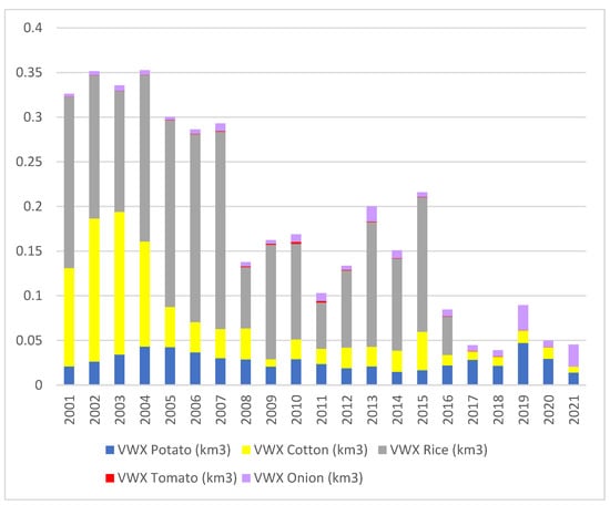 | Rice | DVW exports (105 m3) | 293 | −1179 | −1031 | −1917 |