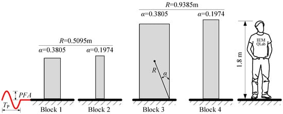 - Zhang, J.; Makris, N. Rocking response of freestanding blocks under cycloidal pulses. J. Eng. Mech. 2001, 127, 473–483. [Google Scholar]