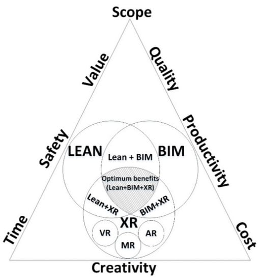 - Alizadehsalehi, S.; Hadavi, A.; Huang, J. BIM/MR-Lean construction project delivery management system. In Proceedings of the 2019 IEEE Technology & Engineering Management Conference (TEMSCON), Atlanta, GA, USA, 11–14 June 2019; IEEE: Piscataway, NJ, USA, 2019. [Google Scholar]
