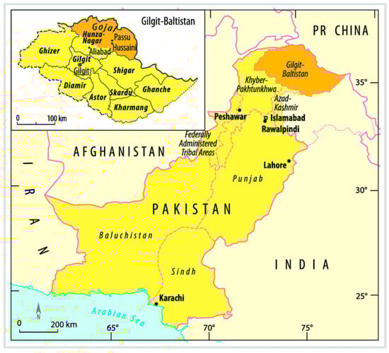 GB, an administrative territory of Pakistan, has 1.5 million inhabitants and 27,188 square miles (72,000 square kilometers); GB comprises three divisions—Chilas, Gilgit, and Baltistan—and 10 districts [9]. The Wakhan strips (Afghanistan) and Xinjiang province of China border the north, while Indian Occupied Kashmir borders the south and southeast and Chitral borders the west (KPK) (see Figure 1). Five of the fourteen highest mountains in the world are in this region. GB’s beautiful glaciers feed rivers (River Indus) that store 75% of its water. GB has mountains, Deosai plateau, lakes, the Karakoram Highway, glaciers, deserts, forests, flora, fauna, heritage, culture, and traditions. In 2017, 1.72 million people visited GB; this number is expected to increase to around 2.5 million this year [10]. Well-planned tourism may make money. The CPEC gateway project relies on Gilgit Baltistan. It is the entryway to CPEC and is crucial to its success.