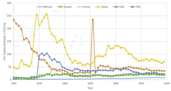 Per capita GHG emissions of GCC countries.