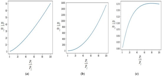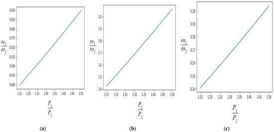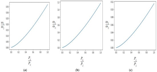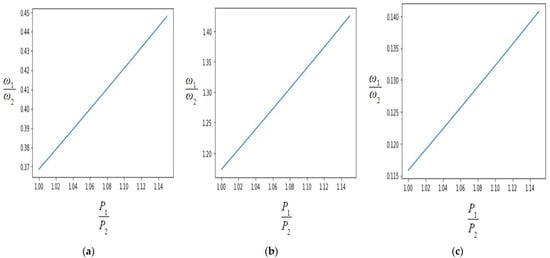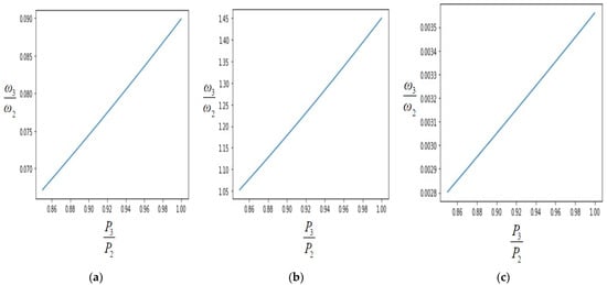 From proposition 1, it can be explained why the ratio of carbon reduction R&D for green low-carbon end-use goods with different absorption proportions to the number of scientific and technological progress sectors depends on the probability ratio of successful R&D of green low-carbon end-use goods with different absorption proportions to R&D in the scientific and technological progress sectors, given the background that enterprises and residents actively, consciously and autonomously practice green low-carbon behavior. The labor input ratio of green low-carbon final goods with different absorption proportions, the cost ratio of green low-carbon intermediate goods with different absorption proportions, and the price ratio of green low-carbon end-use goods with different absorption proportions have not been previously considered in the literature. The parameter settings of determine whether the ratio of carbon reduction R&D for green low-carbon end-use goods with different absorption proportion to the number of scientific and technological progress sectors is positively or negatively correlated with other ratios. For example, when , , the ratio of carbon reduction R&D for end-use goods with different absorption proportion to the number of scientific and technological progress sectors and the price ratio of low-carbon end-use goods with different absorption proportions are directly proportional to the innovation productivity parameters of low-carbon end-use goods with different absorption proportions.