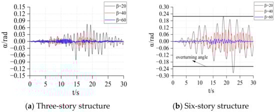 means that the rotation angle has exceeded the overturning angle of the rigid block itself, and the subsequent response becomes meaningless, so the overturning time occurs at the mark in