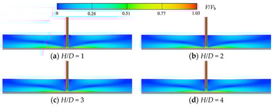 5.1. Flow Field Analysis of Submerged Jet under Different Impinging Distances