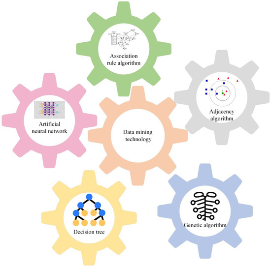 Traditional technology and advanced technology are usually two independent components of DM theory and technology. The object of DM is usually a variable with a large number of samples, which is used to simplify and modify the multivariate analysis involved in advanced statistics. In particular, discriminant analysis using factor analysis for classification and cluster analysis using group division are commonly used in DM. The most commonly used DM methods are displayed in Figure 3.