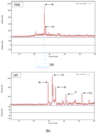 X-ray diffraction of PSBE and OPC. (a) PSBE; (b) OPC.