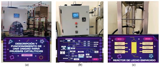 Figure 3a shows the front view of the CRP while the two main units, the furnace and the continuous flow reactor, are shown in Figure 3b,c, respectively.