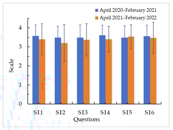 For the satisfaction criterion, Table 9 shows the responses for questions SI1 to SI6, while Figure 9 shows the mean value for the responses for each question. More than 90% of the students consider to be satisfied in aspects as achievement of skills (SI1 and SI5), reward for effort (SI4), interest in knowing more about the subject (SI2, SI3 and SI6). Students’ satisfaction with the inclusion of AR tools in their learning was also showed by Low [26]; however, they also mentioned that providing immediate feedback to continuous evaluation could provide better memory retention of fundamental information and sense of satisfaction.