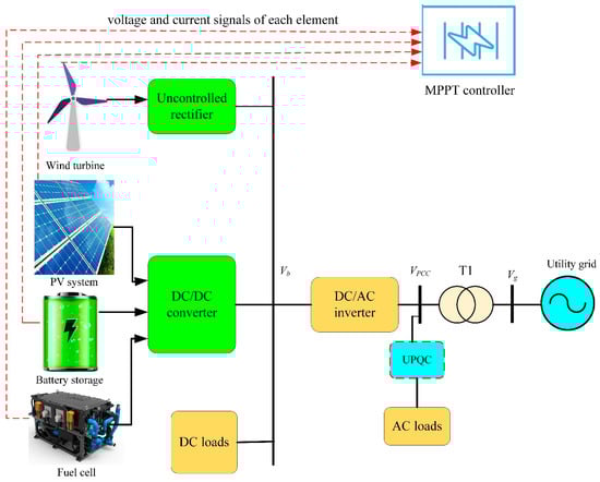 The emergence of global warming and limits on the availability of fossil fuels have encouraged countries to pursue formidable green energy technology initiatives [,]. The use of renewable energy sources (RESs) has a plethora of environmental benefits. In accordance with the International Renewable Energy Agency [,], it is expected that by 2030, 36% of the world’s total energy consumption will be fulfilled by RESs such as solar, wind, tidal, wave, and geothermal sources. Of these RESs, solar and wind systems are currently considered to be the most promising, thanks to their decreased generating costs while being capable of maximum power point tracking (MPPT). This enables them to adapt to fluctuations in both solar intensity and wind velocity [].