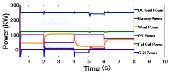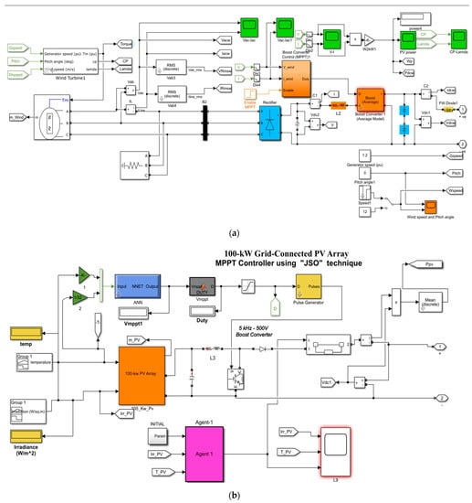 The PV, WT, and FC subsystems have been linked to a DC bus through a universal DC/DC boost converter. The Simulink model of the overall system is shown in Figure 7. The gain of those DC/DC converters can be obtained as follows:
