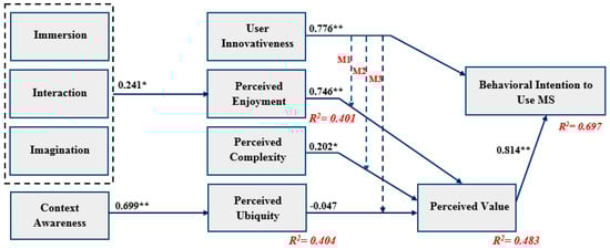 Perceived ubiquity possesses a positive impact on the perceived MS value.