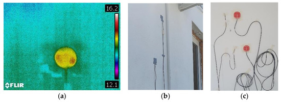 An infrared camera was used to identify the most thermally uniform area of the wall where the sensors should be applied. For this purpose, the test cells were built with surface conduits in order to avoid placing any alien material underneath the plaster (Figure 5).