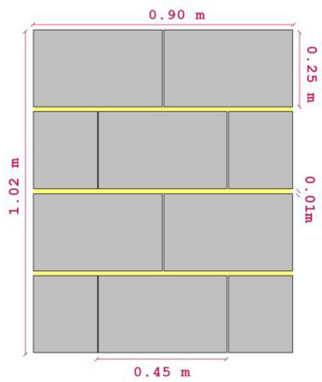 Diagram of the wall dimensions including the layer of mortar.