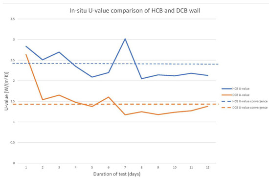 The equation used to calculate the U-value at which the measurement should converge was determined according to ISO 9869-1’s [34] “average method” shown in Equation (9) below, where