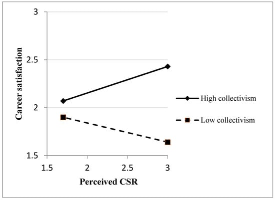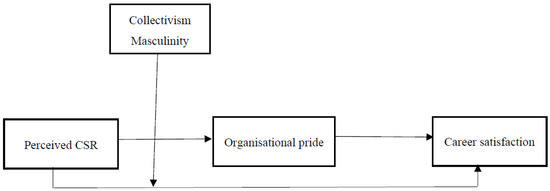 Ref. [] postulated that collectivism moderates the mediating influence of organisational pride on CSR opinions and organisational citizenship behaviour. Therefore, collectivism may impact CSR opinions and organisational pride, indirectly impacting career satisfaction. Consequently, the following hypotheses are proposed: