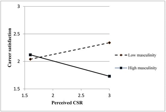Masculinist individuals have been found to care less about morality as compared to feministic individuals []. In another study, feministic individuals were found to be more sensitive to ethicality and social relationships as compared to masculinist individuals []. CSR initiatives are ethical and benefit society. Masculinist employees may not positively acknowledge these CSR activities, as their pride and career satisfaction may not be as strong as those of feministic employees who are more sensitive towards the initiatives that provide support to the underprivileged. The CSR initiatives are an avenue to promote the welfare of stakeholders such as customers, employees, government, and suppliers, and centre on ethics, society, and environmental pillars. CSR programs are pertinent to increasing organisational reputation and pride. Consequently, we propose the following hypotheses: