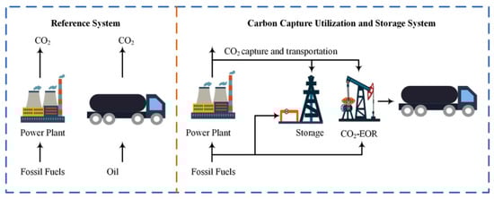 Climate change is accelerating the global ecology to dangerous levels. Greenhouse gases have been widely recognized as the critical cause of extreme climate events [1]. The issue related to carbon neutrality has received a large amount of attention and concern over the last several years [2]. Carbon capture, utilization, and storage (CCUS) has been accepted as a critical technology to reduce CO2 emissions and mitigate climate change hazards [3]. CCUS technology captures, purifies, and stores the CO2 emitted in the production process. Then, the captured CO2 is sold to specific buyers, and utilized in enhancing oil recovery, gas recovery, and coal bed methane [4]. CCUS has been identified as an important technology for promoting carbon emission reduction [5]. According to the global status of CCUS 2021 released by the Global CCUS Institute, there are 135 CCUS projects in operation worldwide, and the number is growing rapidly. Qilu Petrochemical—Shengli Oilfield Project is a representative CCUS project in China [6]. In this project, Qilu Petrochemical first captures CO2 from the tail gas of gasification equipment using liquefaction purification technology. Then, the captured CO2 is sold and transported to Shengli Oil Field through land or pipeline. Ultimately, the CO2 is used for oil displacement in Shengli Oil Field. Data show that the efficiency of CO2 oil displacement is 40% higher than that of water. The CCUS project is expected to inject more than 1000 tons of carbon dioxide (CO2) into 73 wells over 15 years. In addition, nearly 3 million tons of oil production and more than 12% of the oil extraction rate will be increased. Most importantly, the project can reduce CO2 emissions by 1 million tons per year. Figure 1 clearly illustrates the CCUS supply chain system. The Quest Carbon Capture and Storage (QCCS) project, funded and operated by Royal Dutch Shell in Western Canada, is one of the world’s first large-scale CCUS projects. The project captured and stored one million tons of CO2 ahead of schedule in its first year of operation [7]. To date, Quest has captured and stored over 6 million tons of CO2. In totally, the CCUS project plays a critical role in addressing the global greenhouse effect and climate change [8]. The International Energy Agency (IEA) predicted that CCUS will account for nearly 15% of total global emission reductions by 2070 [6].