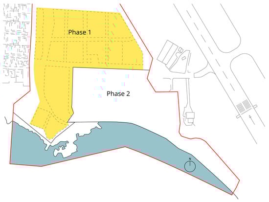 The site plan construction division between the first and second phases.