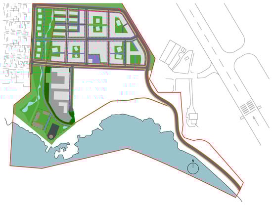 In the first phase of the development of the area, the site plan for New Skerjafjörður will be constructed as an explanatory drawing, as shown in Figure 3. It is divided into 13 sites, and each site has been given specific terms and conditions. The plan is to build 685 apartments, a kindergarten, an elementary school, a parking house, shops, and services, along with recreational areas and transportation constructions for cars, bikes, and pathways [45]. The second phase of New Skerjafjörður will be left out in this case study, and the focus is only on the first phase since that site plan is further ahead in the development phase and has been approved.