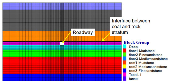 - The stress and deformation patterns of the tunnel vary with the location of the interface in the tunnel. When it is a full coal roadway, the deformation decreases gradually from the interface to the floor. When the coal–rock interface is between the roadway roof and floor, the slope is discontinuous deformation, and there is dislocation between the rock stratum and the coal seam. When the coal height is not less than 1/2 of the roadway height, the rock deformation is less than the coal body. When the coal height is 0.5 m, the rock deformation is greater than the coal.