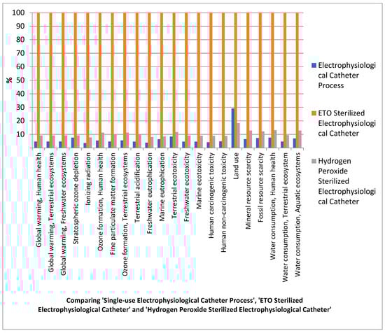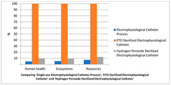 The results show that, in general, using disposable electrophysiological catheters instead of sterilizing a single catheter using either ETO or hydrogen peroxide and reusing multiple times is preferable from a purely environmental perspective. However, in terms of the monetary cost, ETO sterilization is the best option, while disposable electrophysiological catheters are the least economical (with four to five times the cost of sterilization for the process unit “use of electrophysiological catheters five times”). Thus, while the costs of medical devices can be reduced by sterilizing and reusing the equipment, it can lead to an increase in the environmental impacts. This is mainly due to the energy consumed in disinfecting and detoxifying the equipment between each usage cycle. Thus, while it is possible to avoid the use of virgin material extraction and end-of-life waste disposal by replacing single-use devices with disinfection and reuse options, it may not lead to the environmental benefit expected in the long run and may actually have a net negative effect. This represents a dilemma in which medical administrators must carefully consider the advantages and disadvantages of each process. By considering the economic impacts of the long-term environmental damage, this analysis can be extended further. Additionally, this once again illustrates that recycling methods are not always more favorable than single-use devices. As such, it is important to carefully consider the resources necessary for and outputs of each process; to this end, life cycle analysis can be a very helpful tool. The outcomes of this type of analysis is quite important in making decisions and developing regulations on sustainability initiatives, operational procedures, and waste management practices, not only in the medical sector but also in other domains.