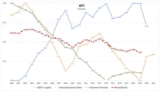 WTI—Economy. It results from computations on the raw data reported in Figure 1. The combined value is the average of the WTI for the different indicators.
