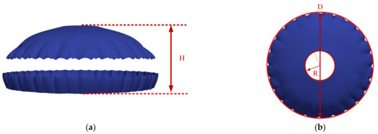- Ofir, Y.; Givoli, D.; Libai, A. An axisymmetric parachute model with wrinkling. J. Mech. Mater. Struct. 2011, 6, 417–442. [Google Scholar] [CrossRef]