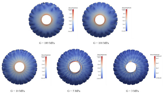 4.2. Effects of Shear Modulus at Macroscopic Scale
