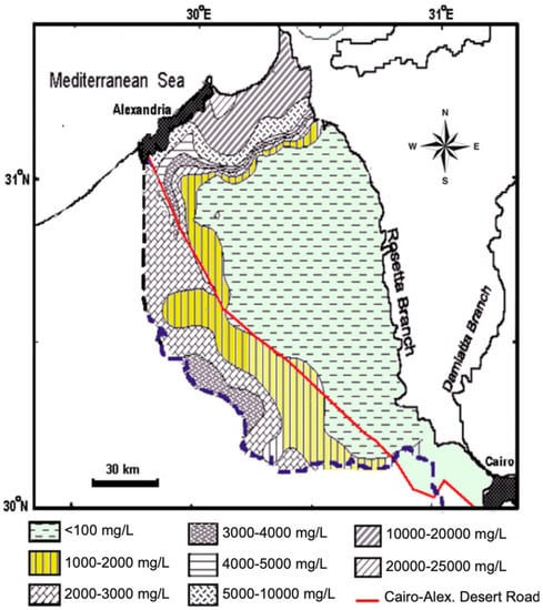 Groundwater salinity map of the groundwater in the Western Nile Delta [27].