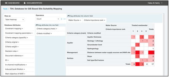 The determination of influencing criteria for MAR suitability mapping for the West Delta site using reclaimed water and utilizing infiltration basins was determined based on an intensive literature review conducted by INOWAS [30] for about 66 scientific case studies from more than 18 countries. This review resulted in a database query tool that was used in assessing the tendencies and preferences applied by the scientific community for MAR site selection using GIS-MCDA.