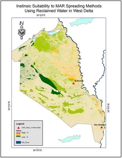 Although the methodology cannot be generalized for arid regions based on a single case study, it can be utilized to obtain a better understanding of more arid-specific aspects for determining the potential for MAR in different regions via spreading methods, as more case studies are considered. Based on the findings, a more environmentally friendly and productive use of reclaimed water can be obtained in West Delta to narrow the present supply-demand gap. By utilizing the investigated approach, better scientifically grounded decisions can be taken to improve groundwater and agricultural planning in the Delta region. Furthermore, it can also help in reducing the over-exploitation of current groundwater resources by introducing an alternative water source through the utilization of non-conventional water resources.