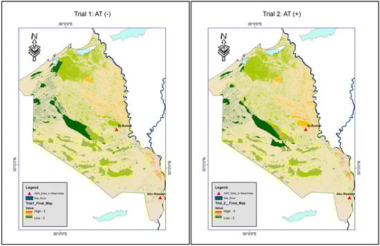 Suitability mapping is thought to be an important component of the MAR system’s planning stage. The choice of recharge techniques, operational parameters, infiltration, and recovery efficiency are all significantly influenced by the site’s location [9]. Suitability maps are considered a highly effective tool that can be used to inform strategic MAR site planning. They are thought to be the first step towards conducting extensive field applications to verify the main influencing parameters for MAR local implementation. Its benefits stem mainly from the ease of overlaying spatial analyses which are quick, dependable, and capable of making future predictions when used in conjunction with appropriate climatic scenarios, changes in land use, projected population growth rates, and new development plans [12].