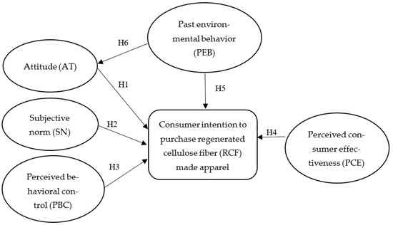 Perceived consumer effectiveness was first proposed by Kinnear, Taylor, and Ahmed [38], which can be broadly defined as the level of how consumers believe their efforts can improve or solve the social and environmental problems [39]. People perceiving higher consumer effectiveness on environmental protection show greater concern for environmental issues [21]. PCE is considered as the connection between environmental awareness and eco-conscious consumer behavior [39]. Vermeir and Verbeke [40] indicated that if consumers believe what they do has a certain positive influence on the ecosystem, they will be more likely to promote and purchase environmentally friendly products. Ganak et al. [16] reported that U.S. millennials who are confident about their positive impact on environmental protection are more inclined to recycle their used denim jeans. McCoy et al. [24] also demonstrated that consumers with a higher PCE show a higher likelihood to try fashion rental services instead of purchasing clothing. Therefore, the following hypothesis was proposed.
