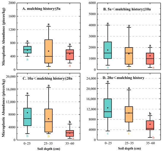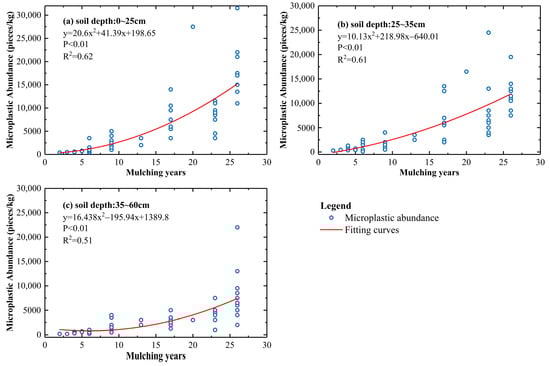 3.3. Relationship between Microplastic Abundance and Mulching History