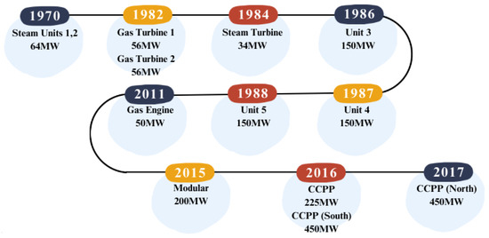 The location of Ashuganj thermal power plant is in the Brahmanbaria district in the Chittagong division in Bangladesh, situated in the Meghna River delta. The decision to establish a thermal power plant in Ashuganj was based on the availability of labor, transportation for heavy instruments, a fuel source, and other necessary supplies. In 1966, a foreign construction company was contracted to build the power plant with financial assistance from the German government. The facility has multiple units, including two steam units of 64 MW commissioned in 1970, two gas turbine units GT-1 and GT-2 of 56 MW each commissioned in 1982, a steam turbine of 34 MW and waste heat recovery boiler commissioned in 1984, and three 150 MW units (Units 3, 4, and 5, commissioned in 1986, 1987, and 1988, respectively). Additionally, a 50 MW gas engine was commissioned in 2011, a 200 MW modular plant in 2015, a 225 MW CCPP in 2016, Ashuganj CCPP (South) in 2016, and Ashuganj CCPP (North) in 2017. The procurement of different plants and equipment was done through international financial assistance. The plant’s installed capacity is 1876 MW, but currently, it operates at a capacity of 1627 MW. Ashuganj Thermal Power Plant was initially registered as a private limited company under the Companies Act 1994 on June 26, 2000, and was later transformed into a public limited company on March 1, 2003, named Ashuganj Power Station Company Limited (APSCL). The power plant covers around 311 acres of land on the northeastern side of the Meghna Railway Bridge. Figure 1 shows a timeline of APSCL’s expansion.