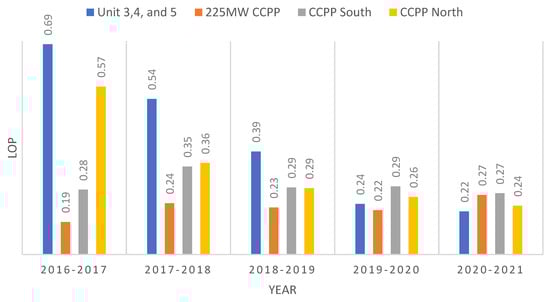 LOP of the plants for the different units of APSCL from 2016–2021.