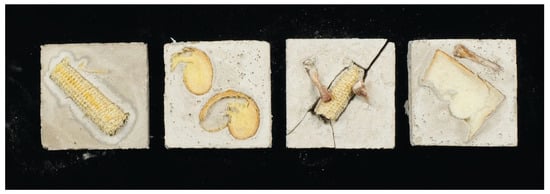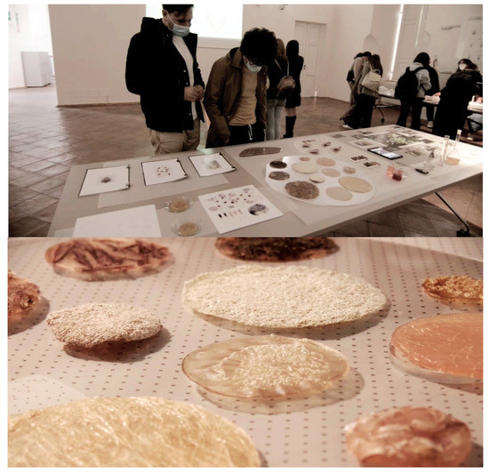 In a subversive way, the aesthetics of the organic–informal replace a reassuring image of the design and indicate a multiverse perspective from which to undo and redo the world. It recovers other senses such as the sense of smell—very present within these practices—and overcomes the supremacy of the eye, which denies the tactility of matter. At the antipodes of a classical ideal of perfection, the aesthetic of biomaterials is punctuated, blurred, imperfect, antihierarchical, opaque, indefinite, and unpredictable. In this sense, it destabilises the viewer, stimulating curiosity and introspective thinking [27].