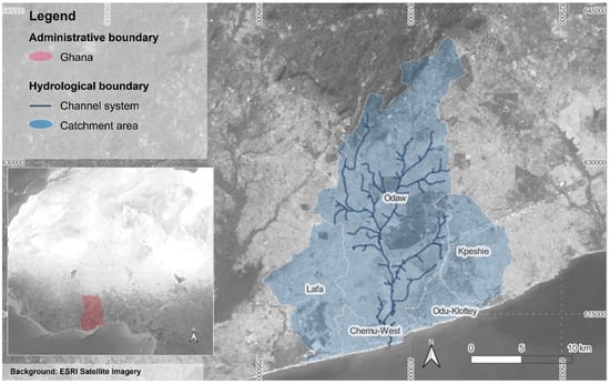 The integration of CI into FRM is presented in a case study in Accra, the capital of Ghana. The PARADeS (participatory assessment of flood-related disaster prevention and development of an adapted coping system in Ghana) project provides the framework for this work, including opportunities for contact with the relevant stakeholders [63]. Key partners are the Ghanaian National Disaster Management Organisation (NADMO) and Water Resources Commission (WRC) [64].