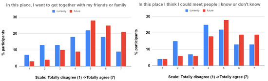 We characterize sociality with the two following statements: “In this place, I want to get together with my friends or family” and “In this place, I think I could meet people I know or don’t know”, as shown in Figure 9.