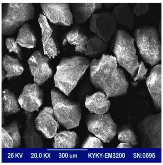 Clean, quartz, medium-gradation sand was sourced from the Chirook sand mine located near Chirook village, Deyhuk Rural District, Tabas, Iran. This site was selected for expediency, being used before as a sand source for laboratory investigations by the authors of other biological soil-improvement methods. These included (i) MICP treatment by various reagent-injection strategies [6] and mixing 1–4 wt% nano-silica additive [26] for dense medium sand, (ii) inoculation of fine, medium, and medium–coarse gradation sands with cyanobacteria [27,28] to improve their hydraulic erosion resistances, (iii) the bio-cementation of the loose medium-gradation surface sand layer employing the MICP technique, by spray application, for mitigating wind-induced erosion [10].