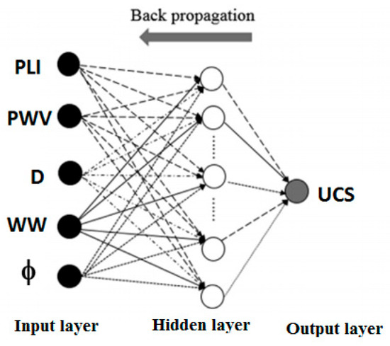Stability of slopes, prediction of drilling rate, classification of rock masses, and modeling of foundations require knowledge of the uniaxial compressive strength (UCS) of the rocks for designing projects [1,2,3]. Indirect determination of the UCS in places where the preparation of standard samples is difficult requires lots of time and is expensive. Hence, various researchers have predicted the UCS of the limestones and sandstones using statistical and intelligent methods [4,5,6,7]. Aladejare et al. [8] collected empirical relationships and models between UCS and other rock characteristics from previous studies. Several models were developed to estimate the rock UCS using Gaussian process regression (GPR) [9,10,11,12,13], feedforward multilayer perceptron artificial neural network (FMP-ANN) [14,15,16,17,18,19], random forest algorithm (RFA) [20,21,22,23], adaptive neuro-fuzzy inference system (ANFIS) [24,25,26,27,28], and multiple linear regression (MPLR) [3,4,7,8,25,29,30,31]. The results of Lawal et al.’s [9] study showed that the GPR method, with a correlation coefficient of almost 100%, is able to estimate the static and dynamic properties of sedimentary rocks. Moreover, a comparison of the RFA, MPLR, FMP-ANN methods in compressive strength estimation showed that FMP-ANN with the Levenberg–Marquardt algorithm has a higher accuracy than other methods [20]. The results of Matin et al.’s [22] study to select the effective variables using the random forest method showed that compression wave velocity is the most effective variable as an input for estimating compressive strength and the modulus of elasticity using predictive models. Hudaverdi [25] stated that the ANFIS method has a high efficiency in flyrock estimation with an average error of less than 8%. The results of the MPLR, ANFIS, and FMP-ANN methods in the UCS estimation showed that all three methods have a determination coefficient higher than 90%, while the ANFIS method has a better performance [26]. The comparison of the ANFIS, FMP-ANN and multiple regression methods by Yesiloglu-Gultekin and Gokceoglu [26] showed that the ANFIS method has higher accuracy for estimating compressive strength and the modulus of elasticity.