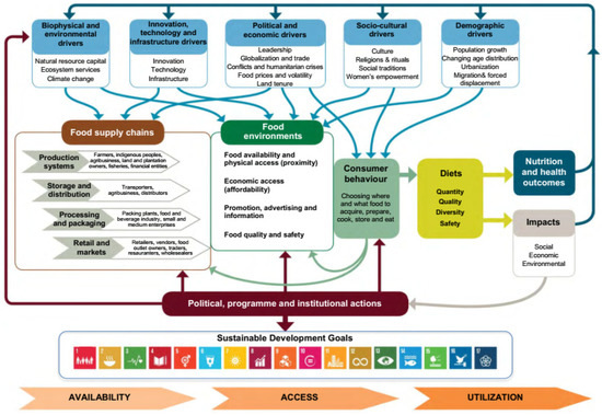 - HLPE. Nutrition and Food Systems (HLPE Report 12) [A Report by the High Level Panel of Experts on Food Security and Nutrition of the Committee on World Food Security]; FAO: Rome, Italy, 2017; Available online: https://www.fao.org/3/i7846e/i7846e.pdf (accessed on 26 February 2023).