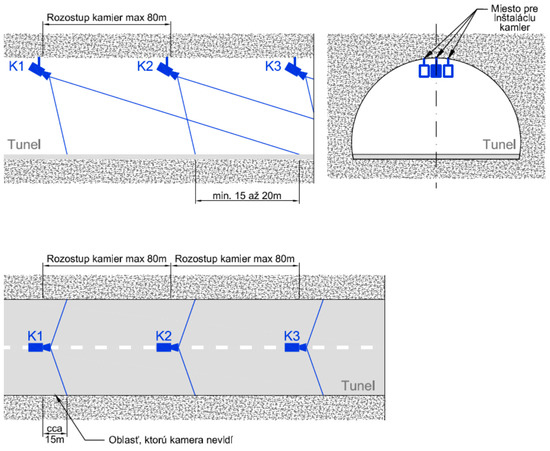 In Annex No. 2 of Government Regulation No. 344/2006 Coll., one of the measures described is that in all tunnels with a control centre, video surveillance systems and a system capable of automatically reporting a traffic failure (such as stationary vehicles) or a fire are installed [3]. The requirements for the design, implementation, operation, and maintenance of camera surveillance, the automatic traffic-incident detection (AID) system, and the automatic recognition system are defined in the methodological guideline TKP 40, defining the technical and qualitative conditions (TKP). In the case of tunnels, camera surveillance is part of tunnels’ safety equipment and is always connected to the central control system. Specifically, IP cameras are divided into [18]: