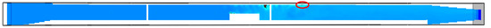 As mentioned above, using AEE, a critical value was measured only at a certain point (90.9 s), but only for a very short time (0.3 s), directly above the source of burning. A view of the simulation at 90.9 s is shown in Figure 7.