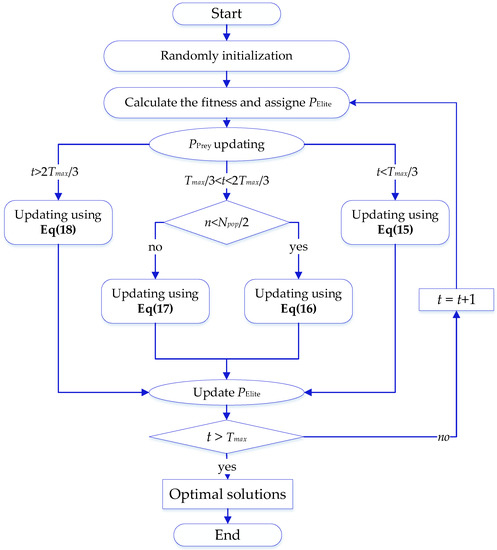 A metaheuristic algorithm called MPA mimics the behavior of aquatic predators in search of prey [65]. The following are the main steps of this algorithm: