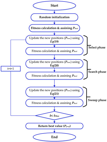 The BES algorithm, which replicates the movement and hunting tactics, is given in [66]. The BES algorithm is divided into three stages: